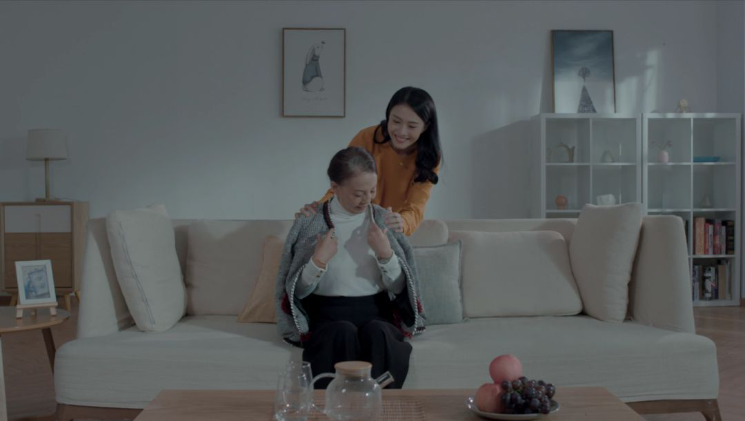 离开工作室的她,将亲手设计的衣服轻柔为婆婆穿上。她有太太的孝顺,也有自己的倔强。